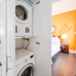 This apartment can sleep up to 5 adults and a baby (cot and high chair are provided). As part of the package bed linen, pillows and towels are also included.